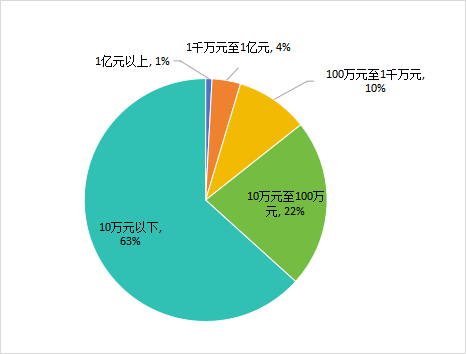 在549例多元解纷案例的处理结果中,有237例能够明确调解金额,总占比约43%。调解金额超亿元以上的有2例,一例为某房地产公司与某金融公司、某资产公司金融借款合同纠纷调解案,调解金额达2.4亿元;另一例为冯某等150名车主与某汽车销售公司买卖合同纠纷调解案,调解金额达1亿元;1千万元至1亿元的有9例,涉及买卖合同纠纷、劳务合同纠纷等;100万元至1千万元的有23例,总占比约10%;10万元至100万元的有53例,总占比约22%;10万元以下的有150例,总占比约63%。